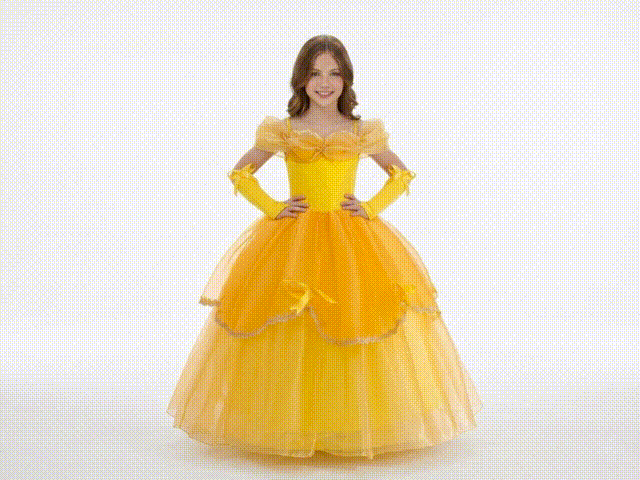Embroidered Lace Princess Dancing Party Wedding Style Yellow Beauty Beast Belle Dresses