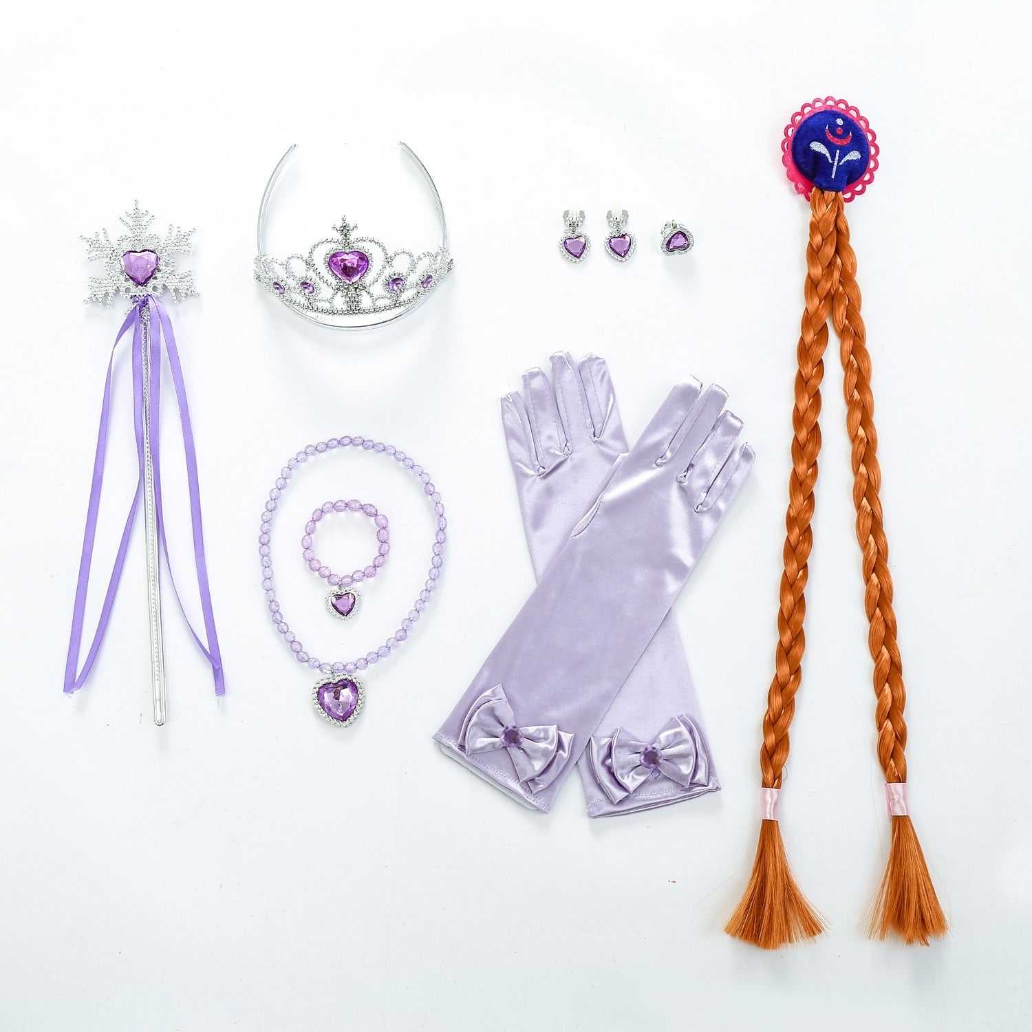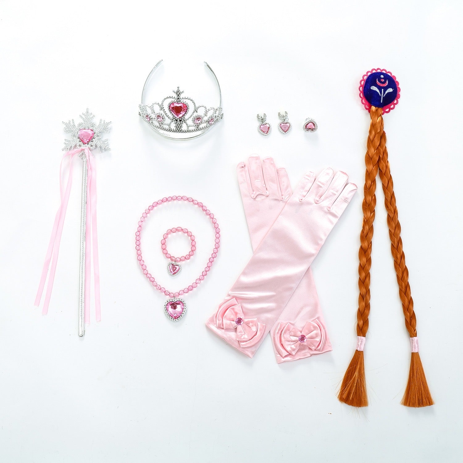 This value package include: wand 1+crown 1+ necklace 1+ bracelet 1+ ring 1 + earrings 2+wig 1+ gloves 2=10 pieces