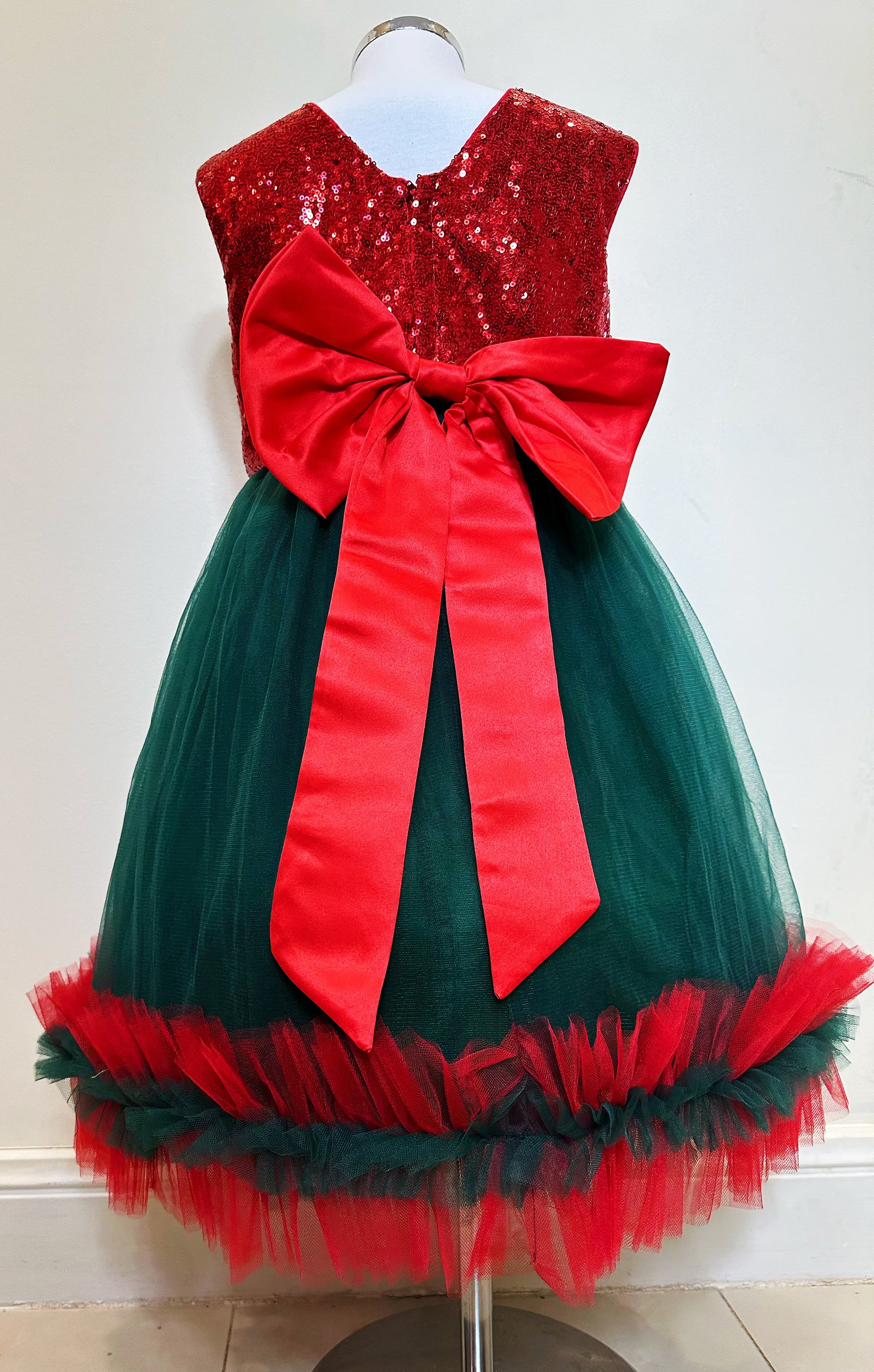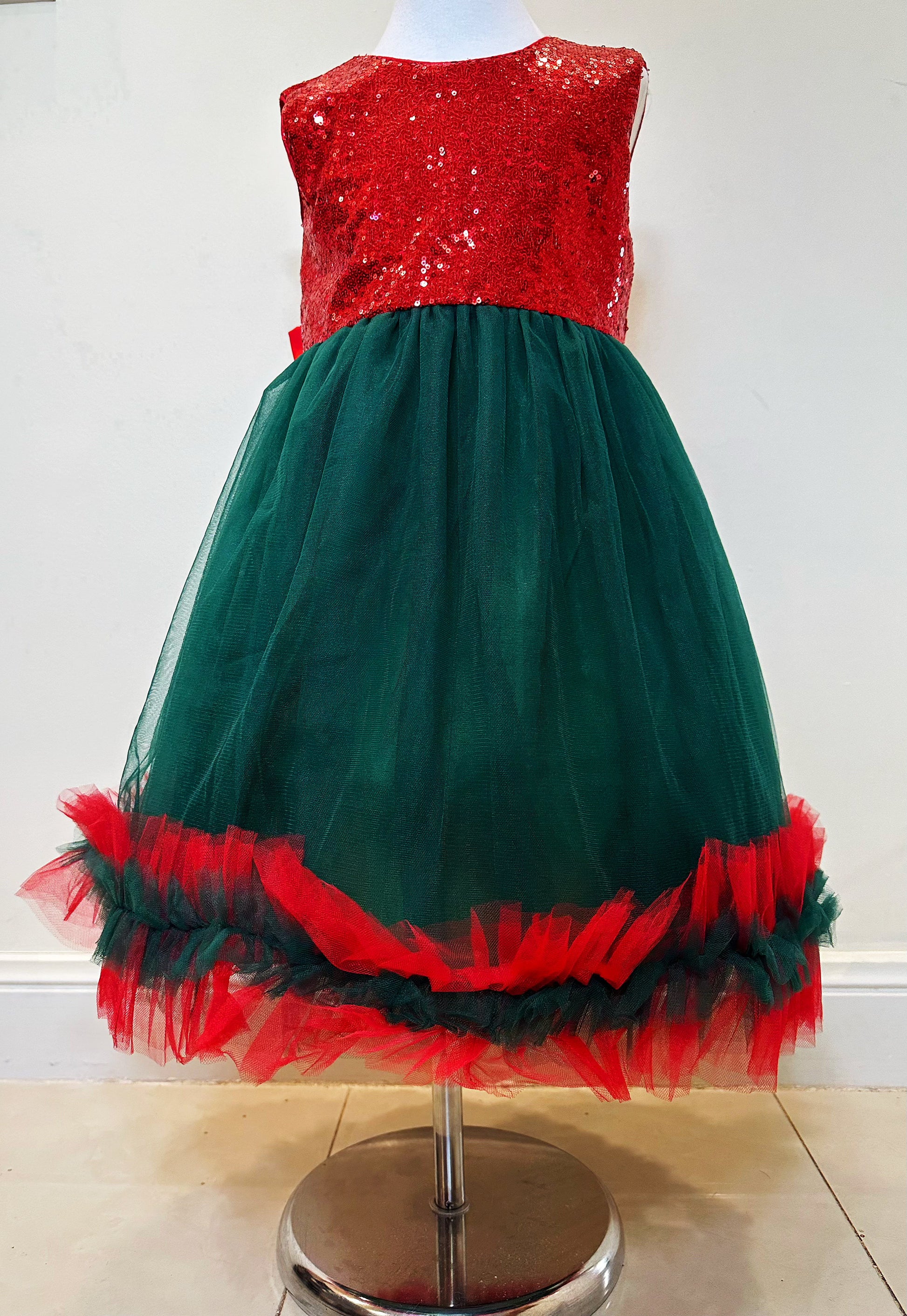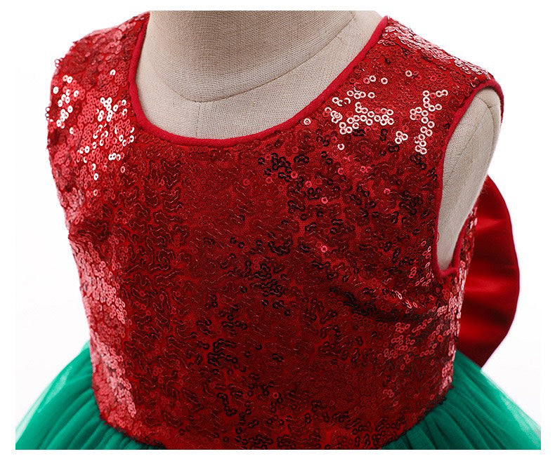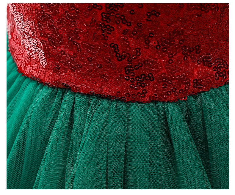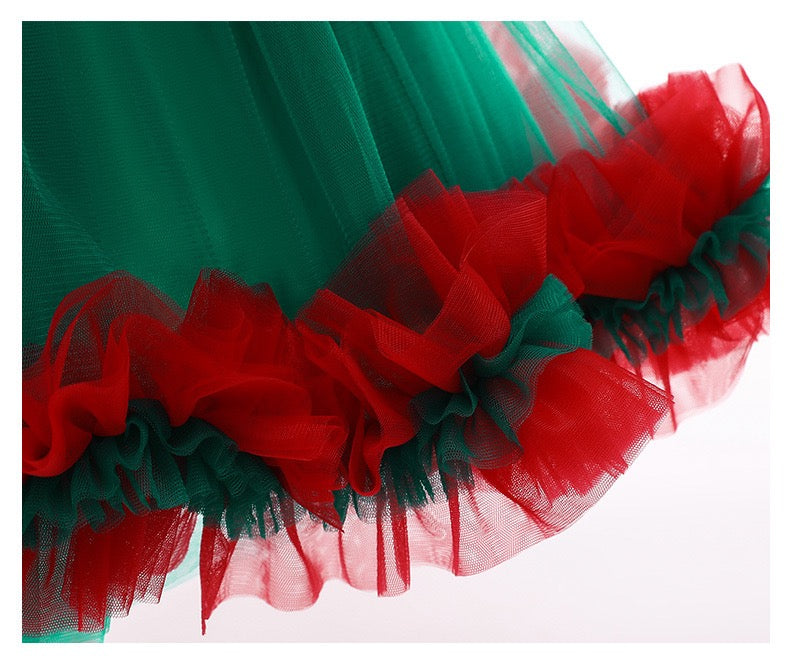 Embroidered Lace Christmas Princess Dresses Red With Green