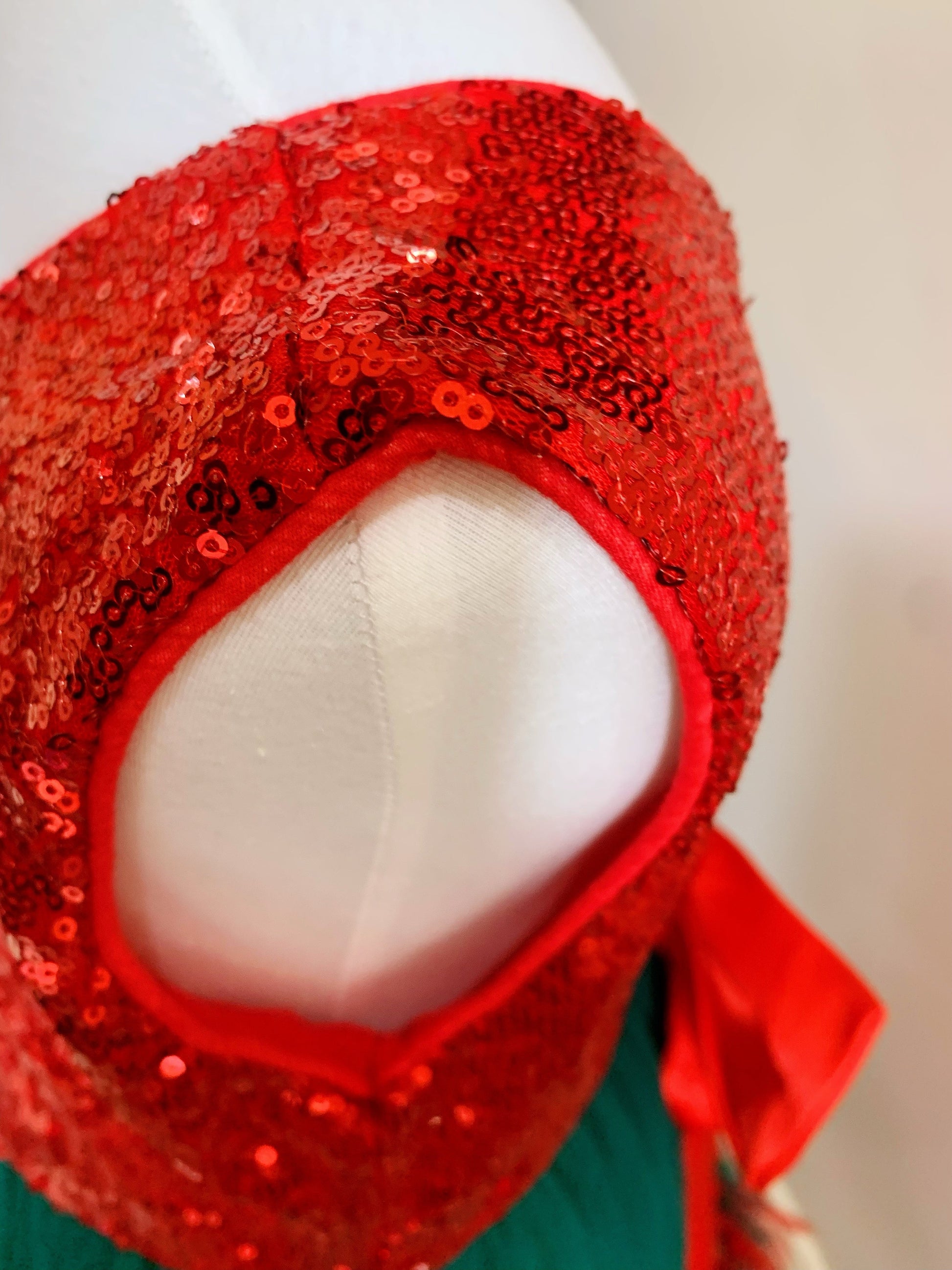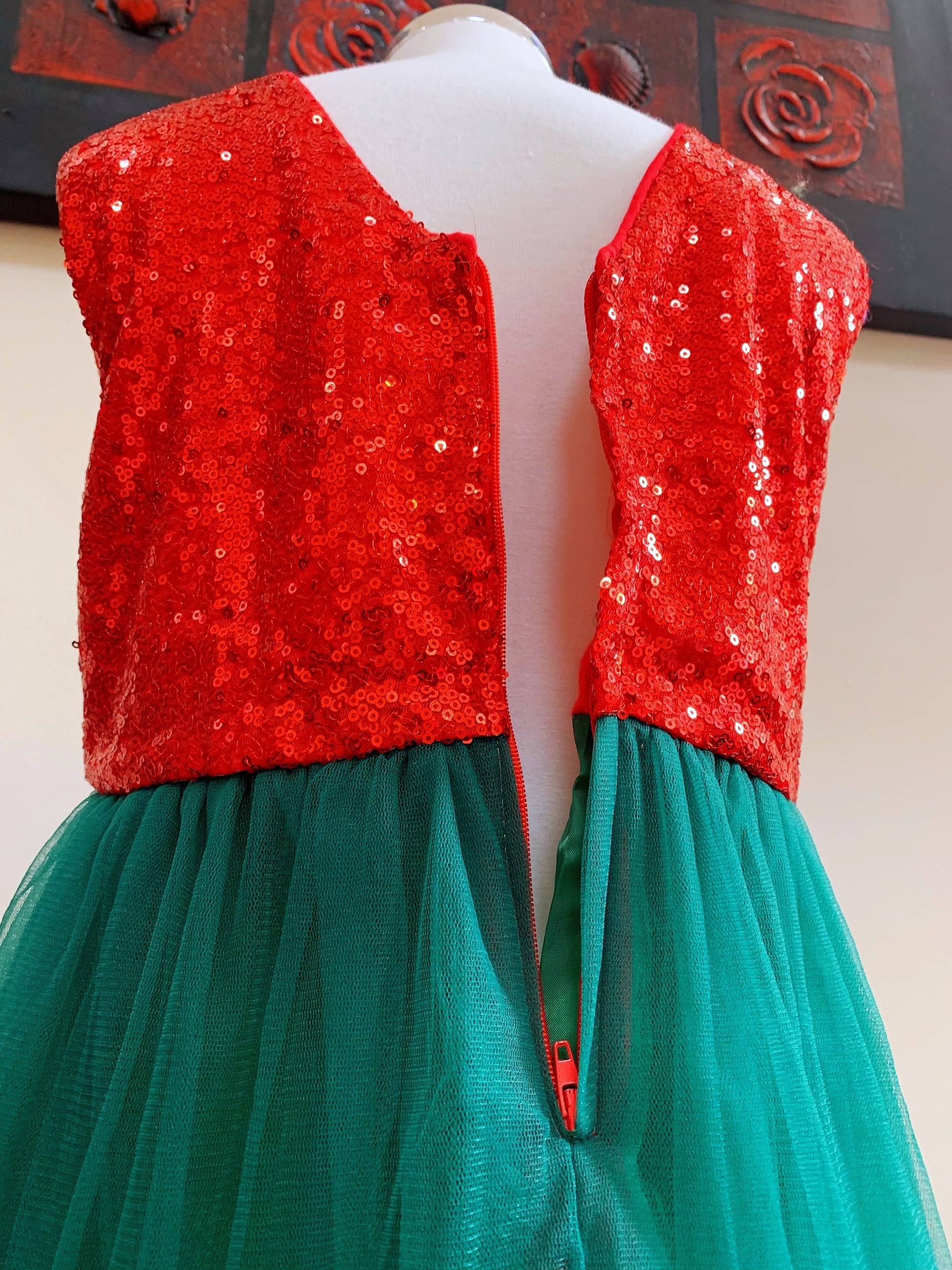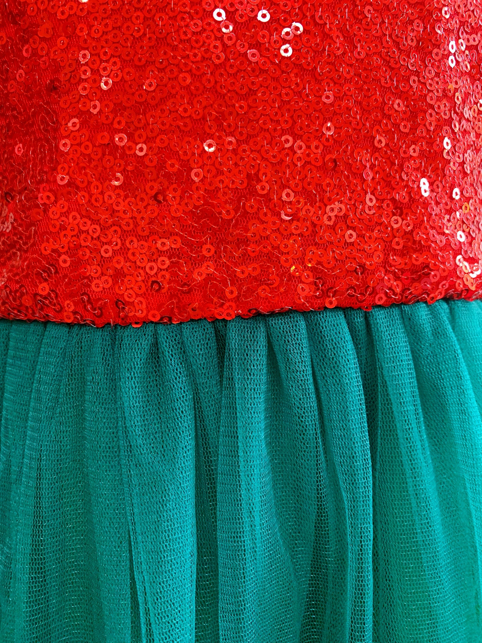 Embroidered Lace Christmas Princess Dresses Red With Green