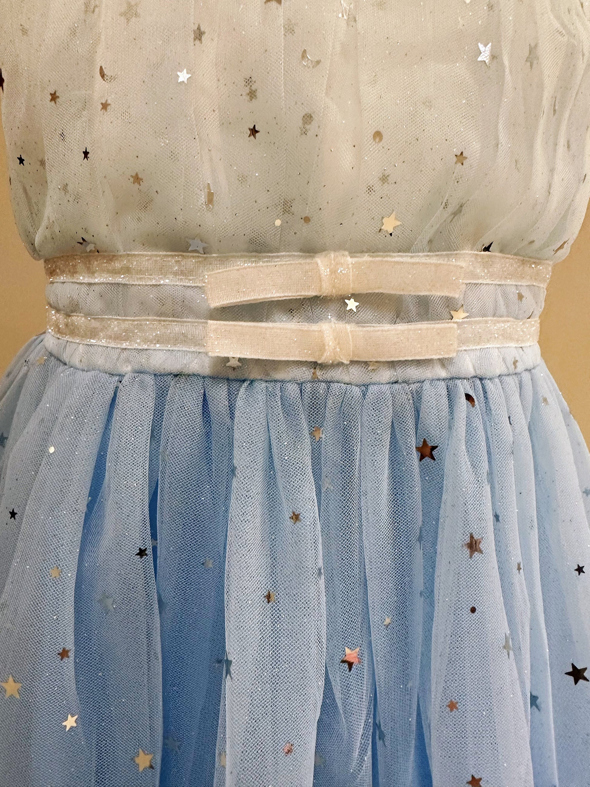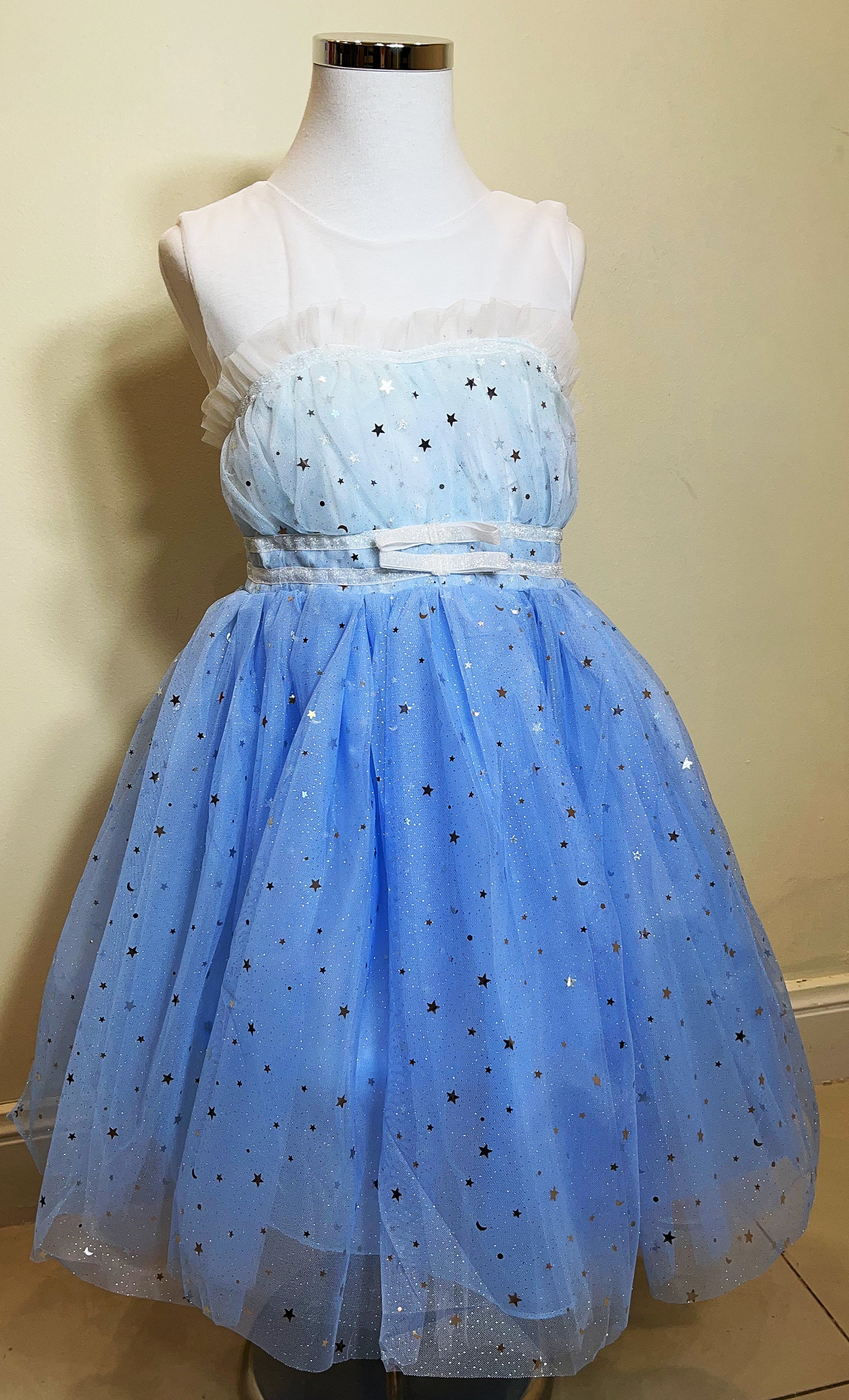 Embroidered Lace Star White with Star Blue Princess Dresses