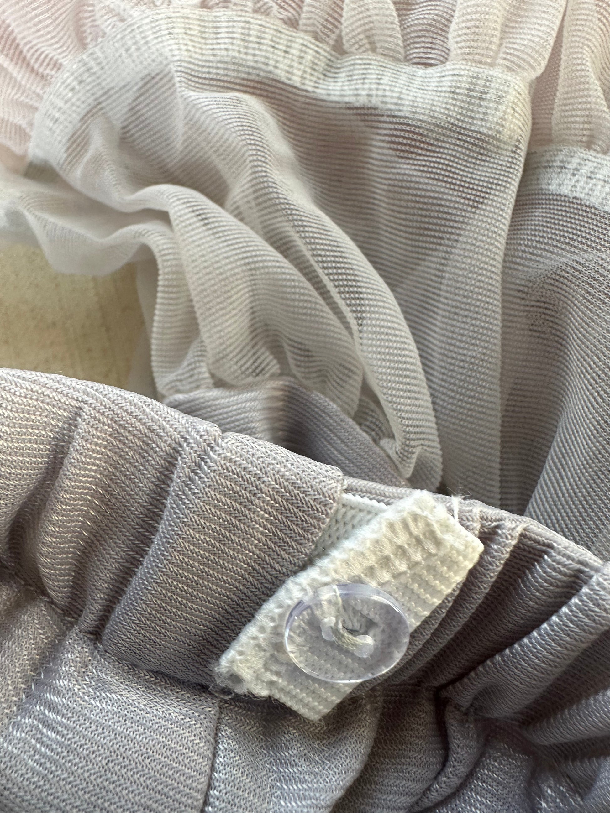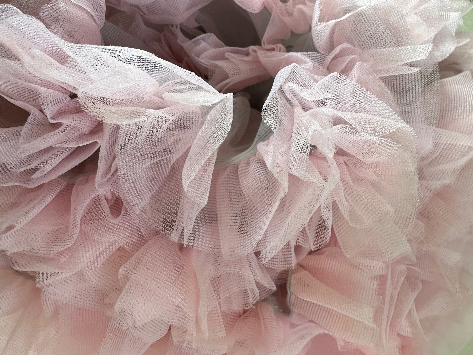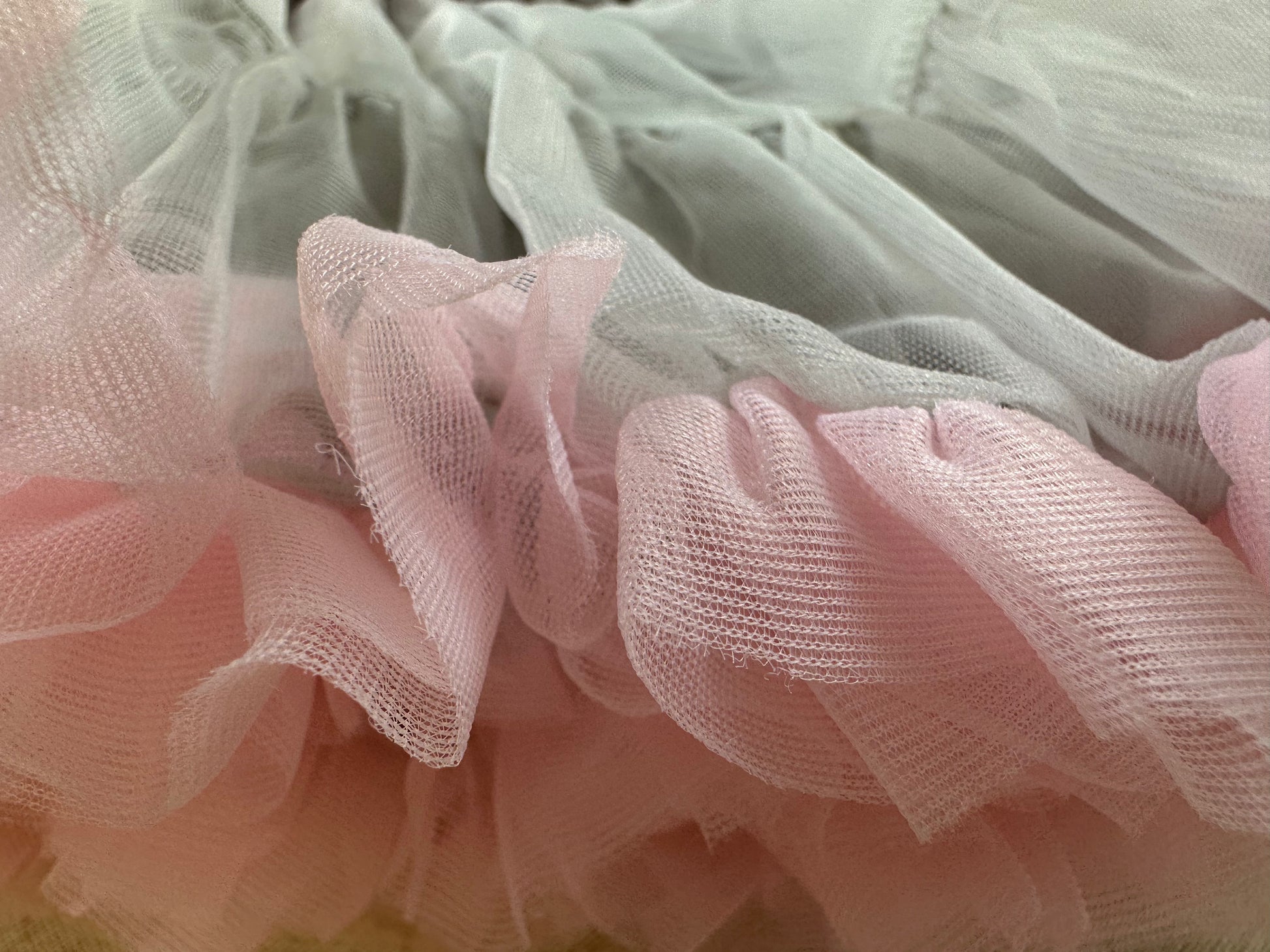 Pls kindly hang for a while and it will resume to fluffy and flat soon. Many thanks. The skirt was made via 2 layers of tulle and 1 layer of lining. The fabric of the skirt is nylon which is soft and fluffy.