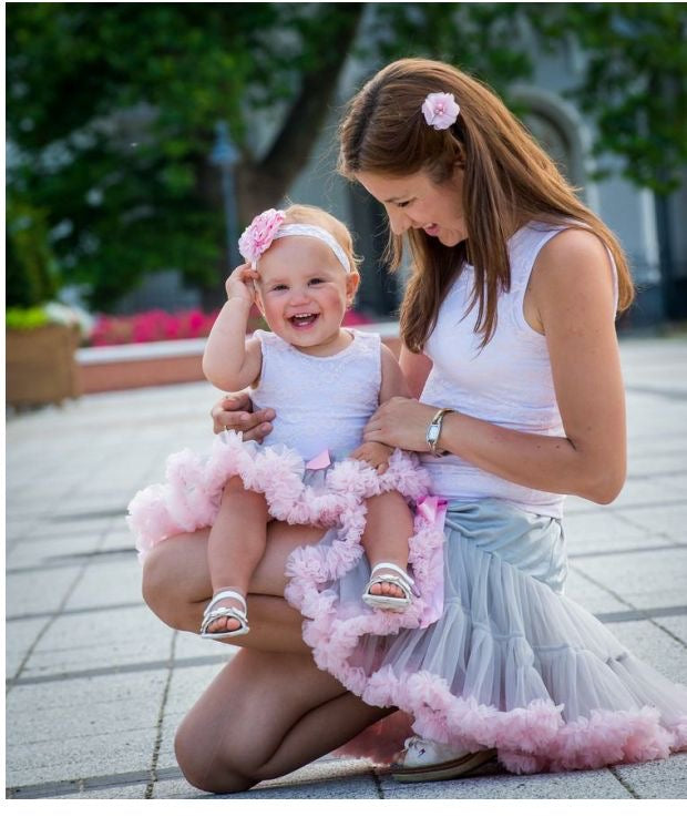 Girls Tutu Skirt Grey With Pink Edge
