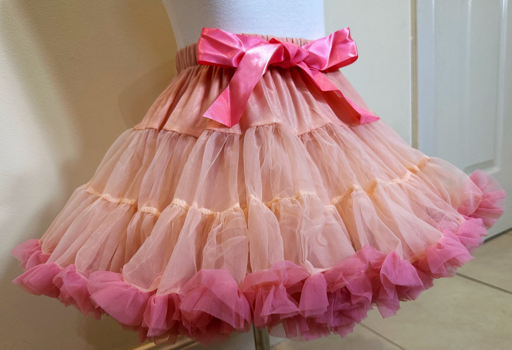 Girls Tutu Skirt Peach With Watermelon Red Edge