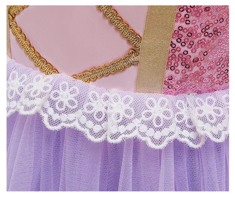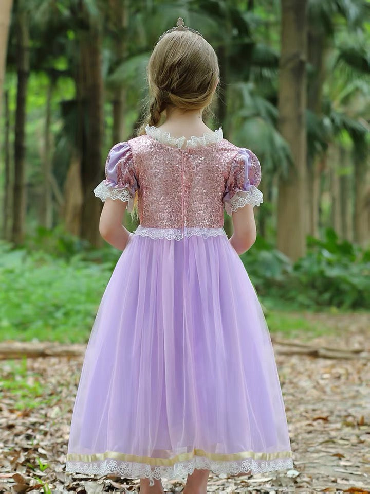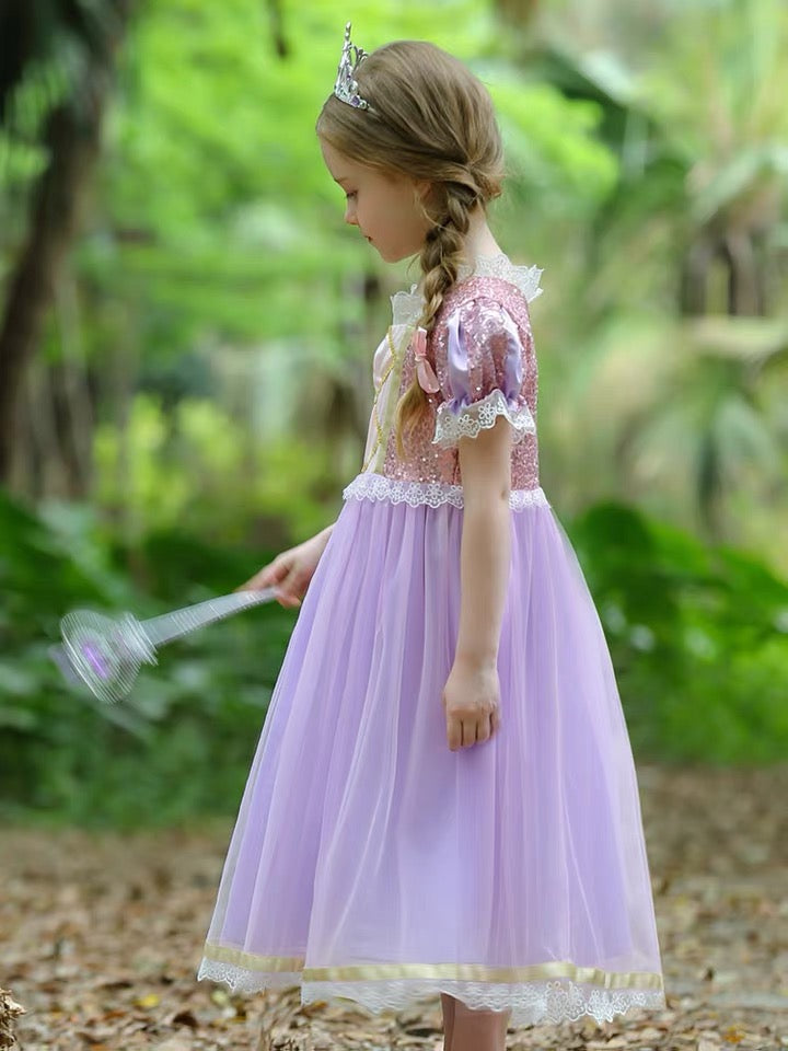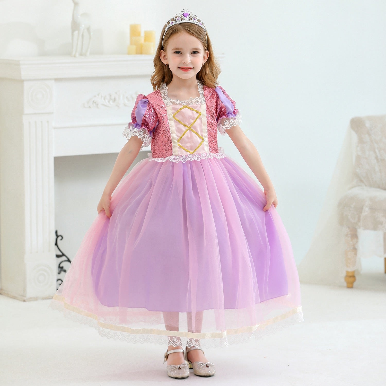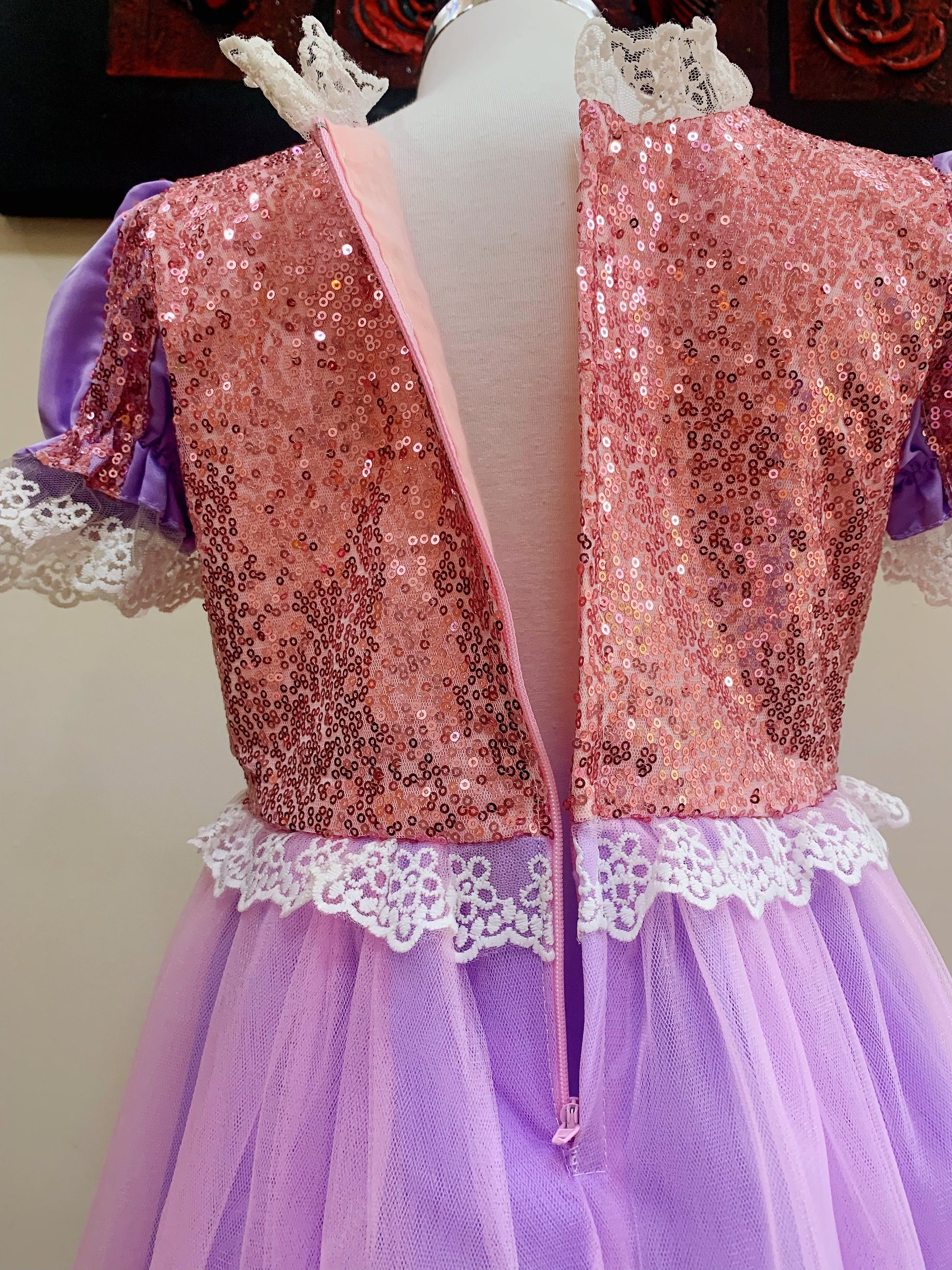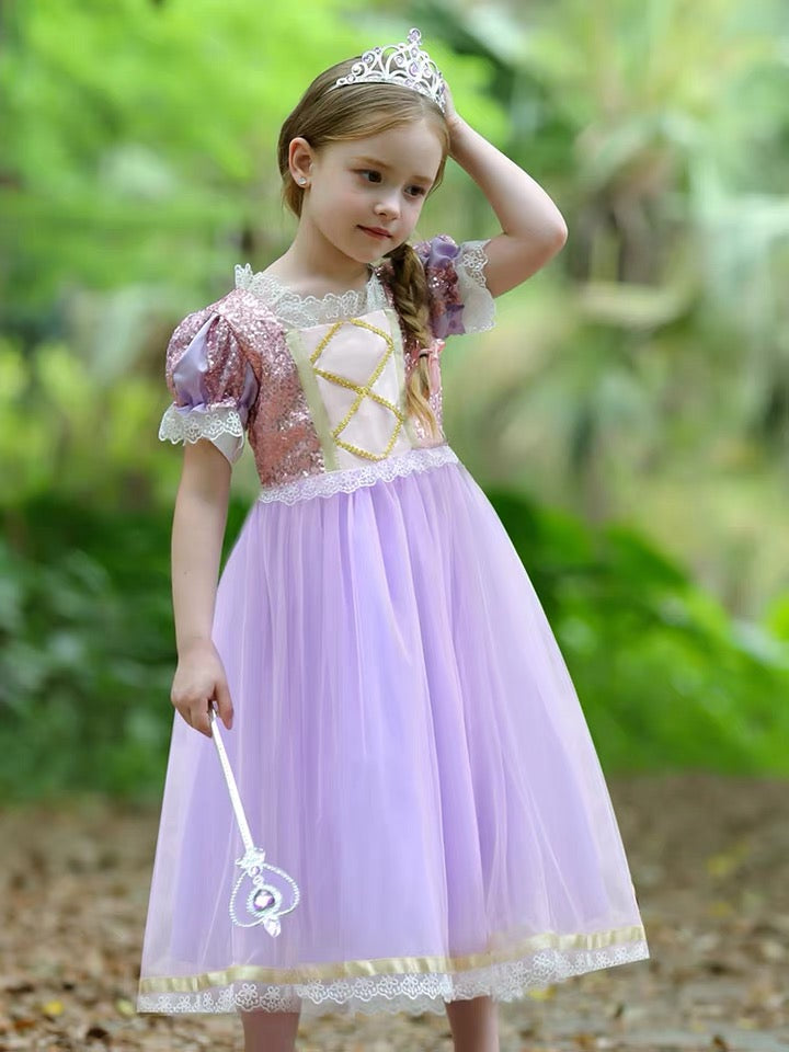 Girls Shinny Purple Sofia Rapunzel Princess Dresses Style1